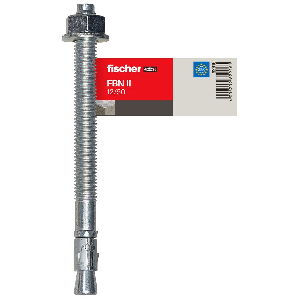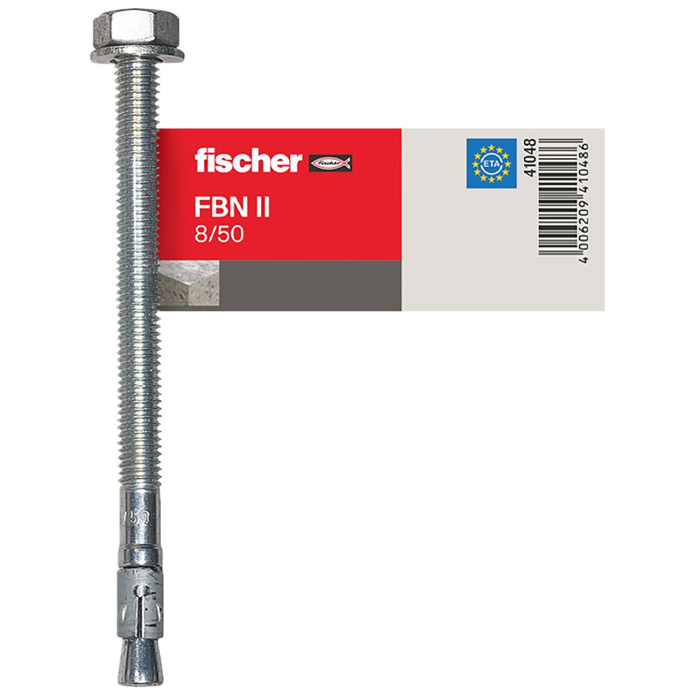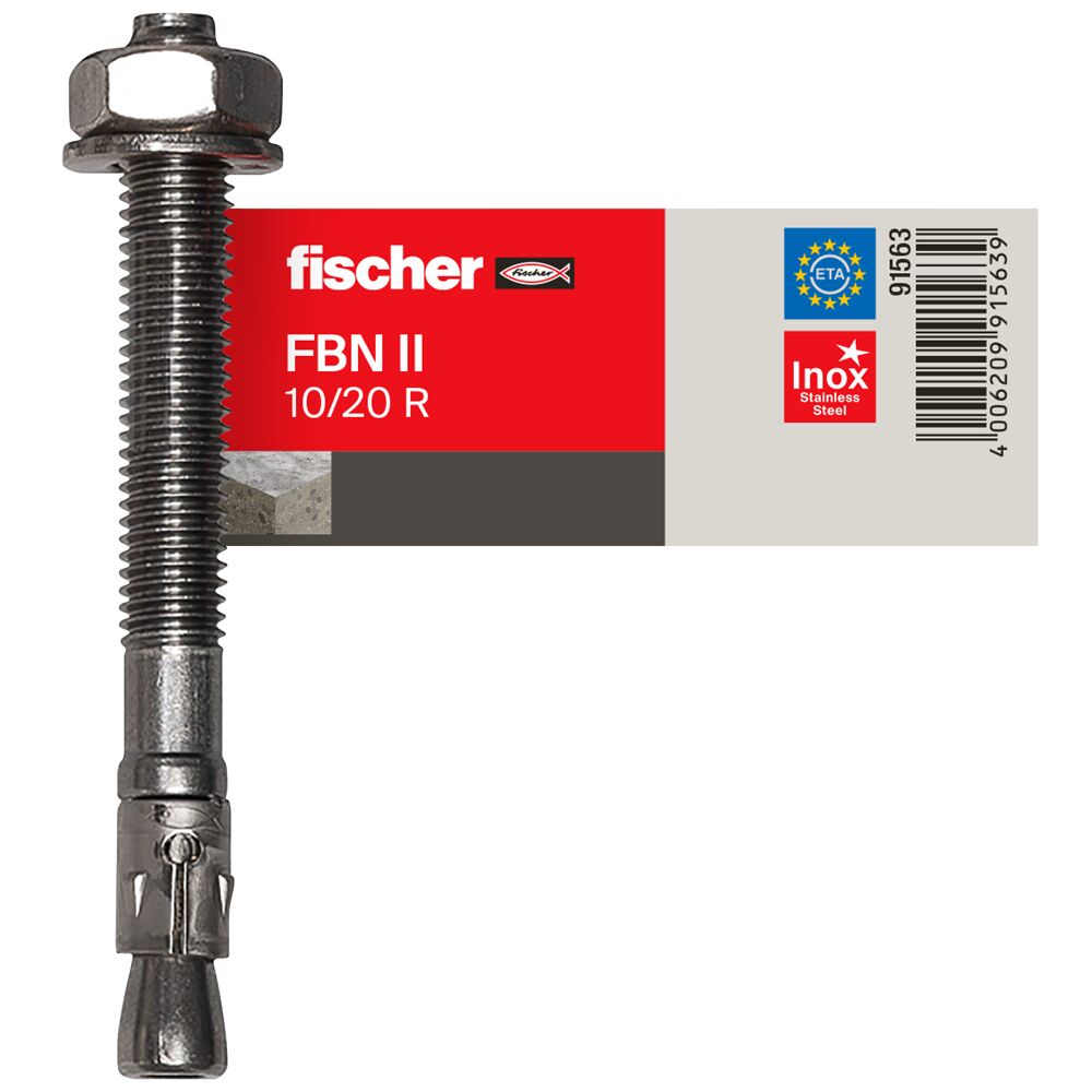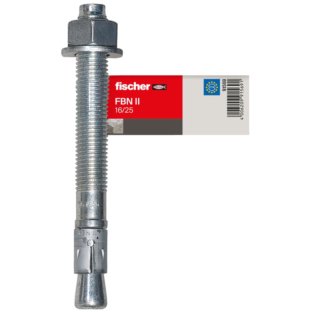 The fischer bolt anchor FBN II is a steel anchor for cost-effective fixations in non-cracked concrete. Thanks to its long thread and the two anchorage depths, the fischer bolt anchor FBN II is particularly flexible. In addition to pre-positioned and push-through installation, the bolt anchor is suitable for stand-off installation. In the stainless steel design, the bolt anchor is suitable for façade sub-structures, cantilevers and ladders outside.