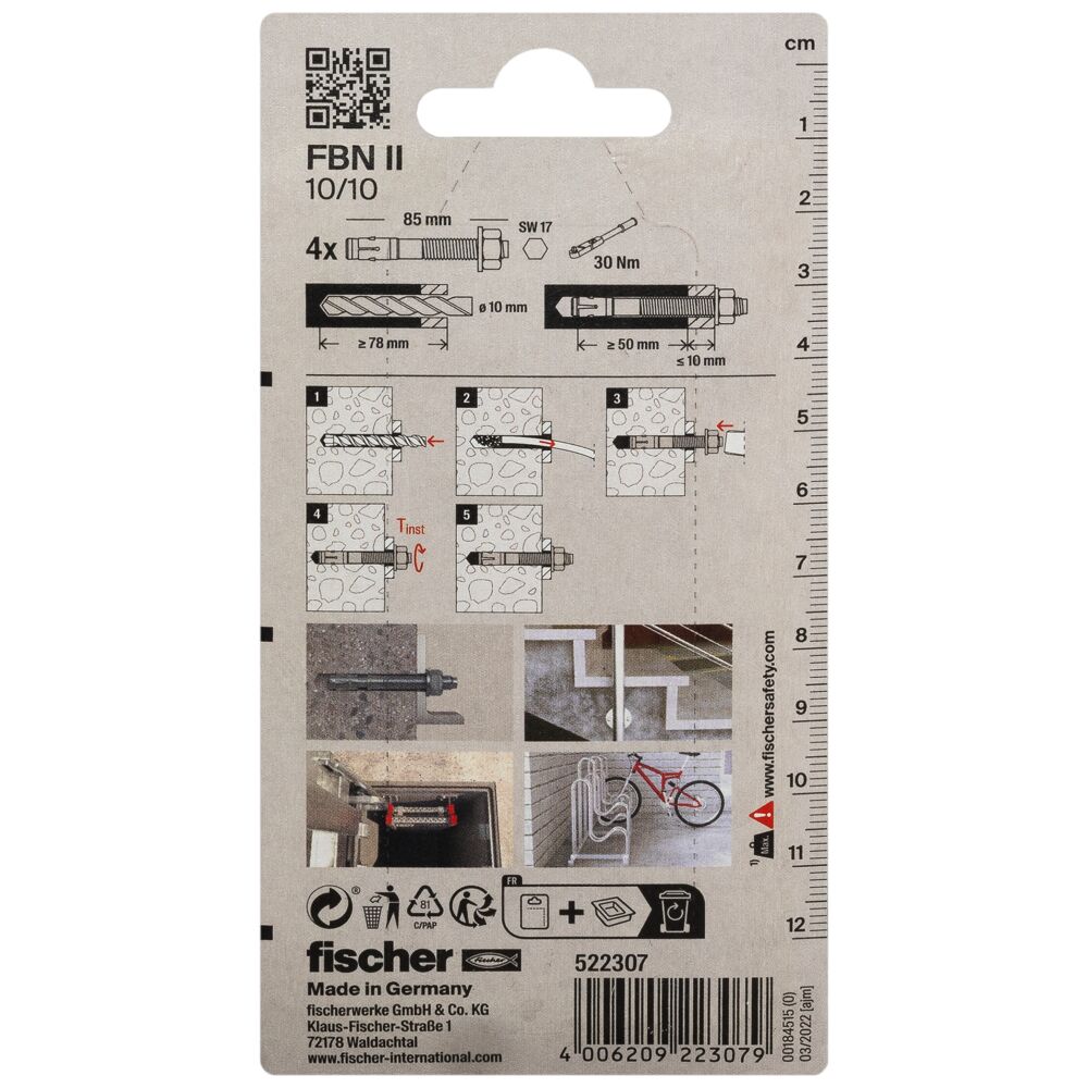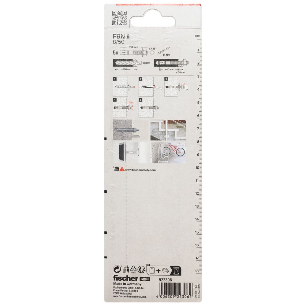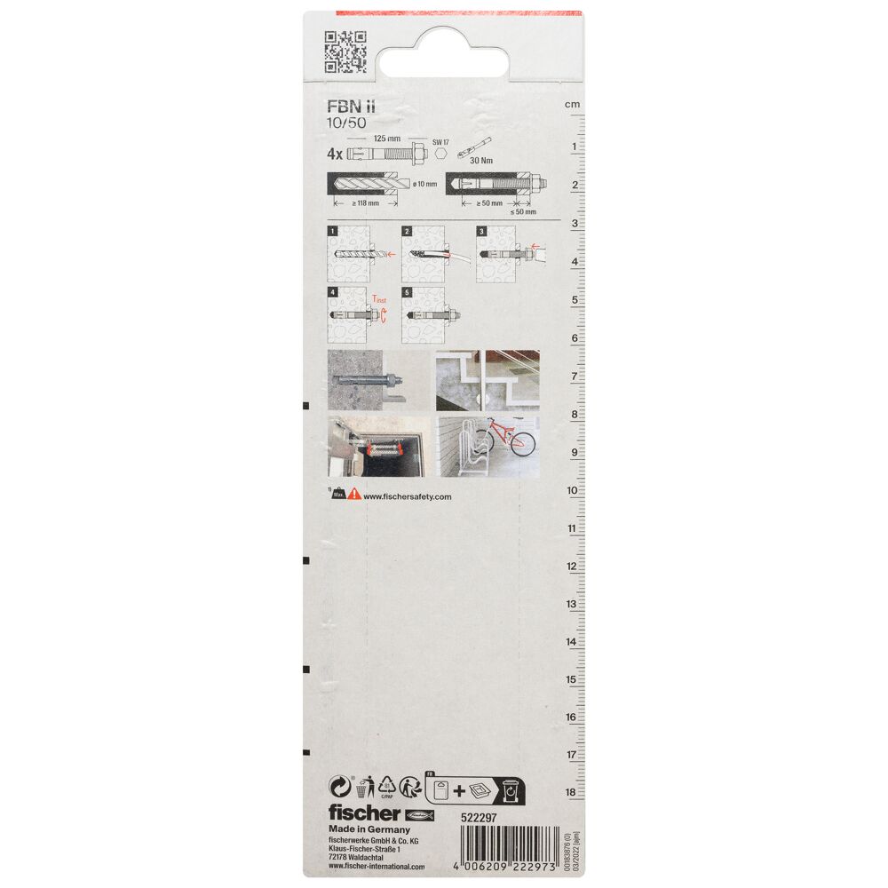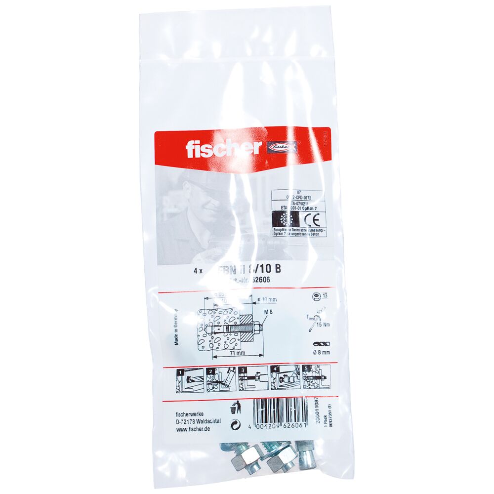 The fischer bolt anchor FBN II is a steel anchor for cost-effective fixations in non-cracked concrete. Thanks to its long thread and the two anchorage depths, the fischer bolt anchor FBN II is particularly flexible. In addition to pre-positioned and push-through installation, the bolt anchor is suitable for stand-off installation. In the stainless steel design, the bolt anchor is suitable for façade sub-structures, cantilevers and ladders outside.
