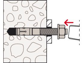 - When applying the torque, the cone bolt is pulled into the expansion clip and expands it against the drill hole wall.